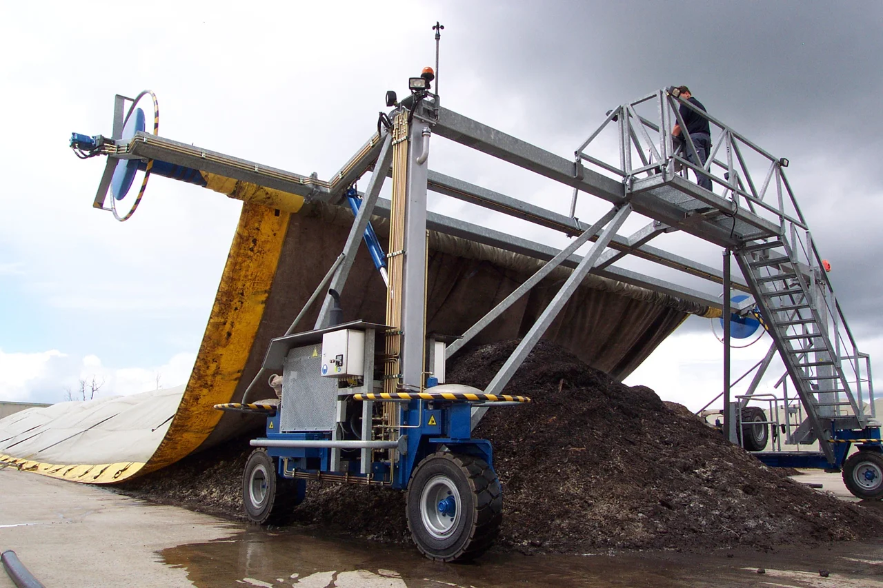Biosolids composting at Moncton relies on specialty fabric covers to ensure quality, reduce odors, and control moisture. The facility processes >10,000 tons of wastewater solids annually.